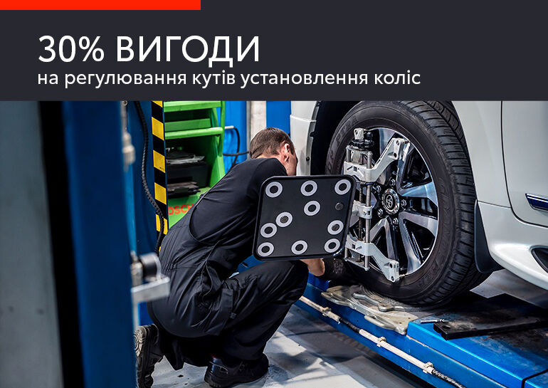 30% вигоди на послугу перевірки та регулювання кута нахилу установлення коліс