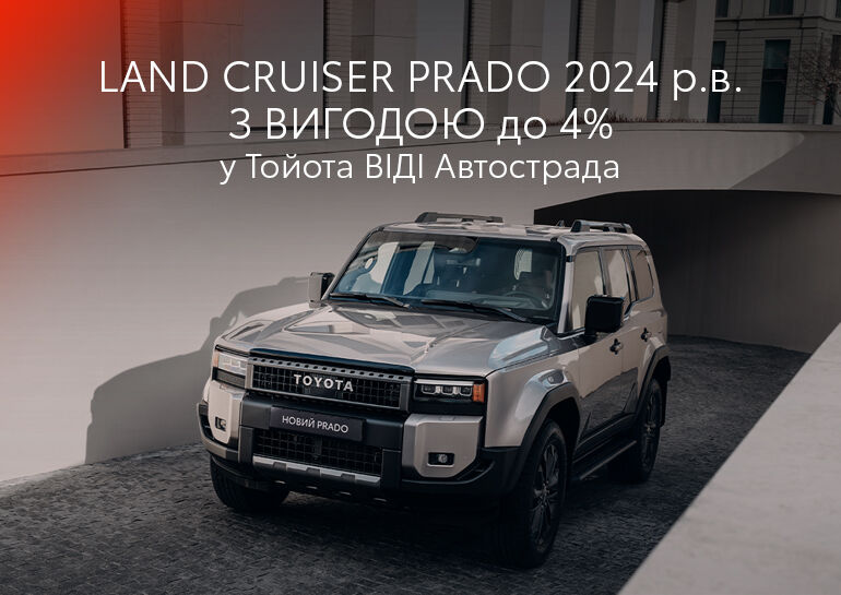 Не пропустіть шанс придбати новий Land Cruiser Prado зі знижкою до 4%! Встигніть скористатися вигідною пропозицією від Тойота ВІДІ Автострада.