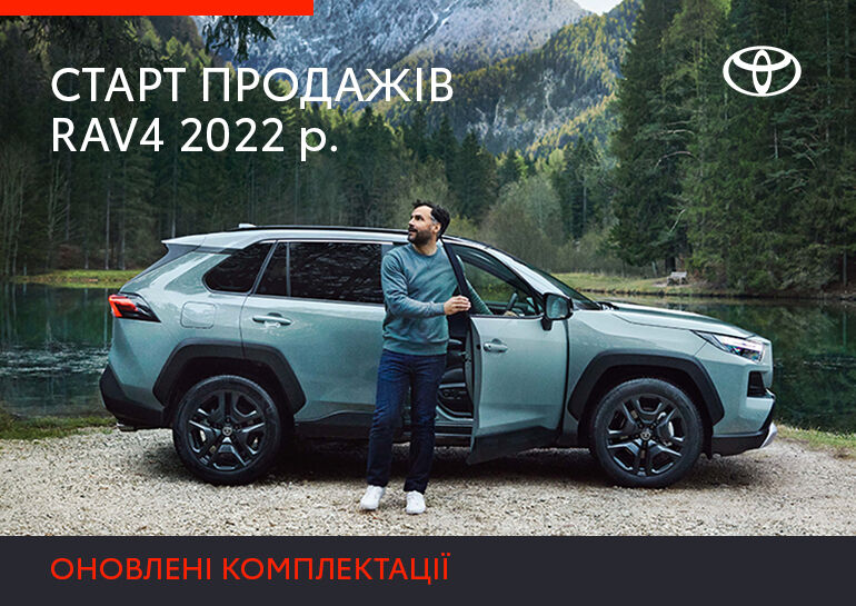 Toyota анонсує початок продажів автомобілів лінійки RAV4 2022 року в Україні. Оновлені комплектації легендарного кросовера мають виразний дизайн і підтримують ефективні технології, що перетворюють будь-яку подорож у комфортну пригоду.